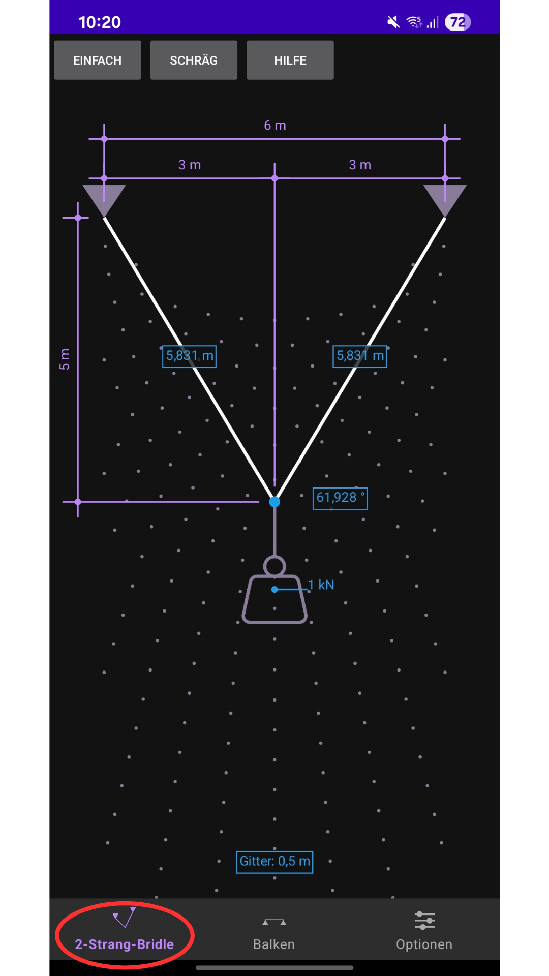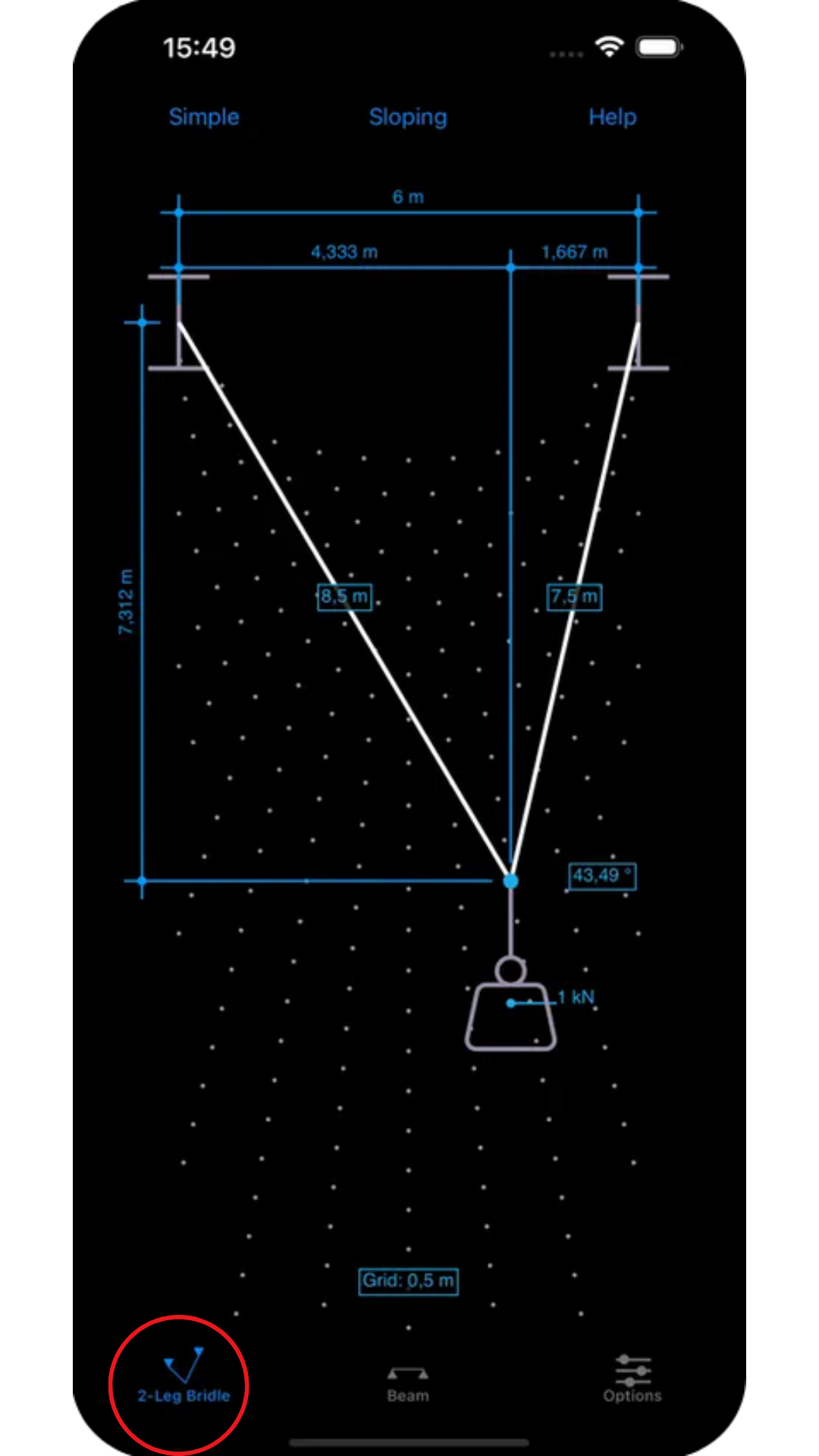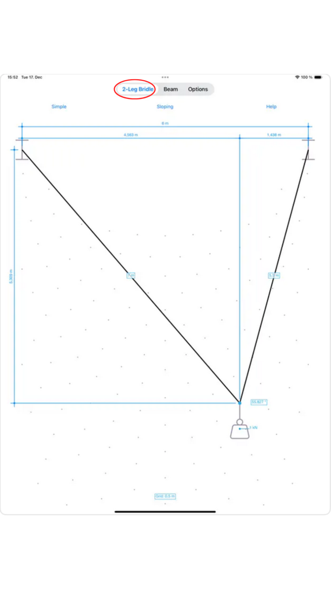 When you open the app, it starts directly in 2-Leg Bridle calculation.